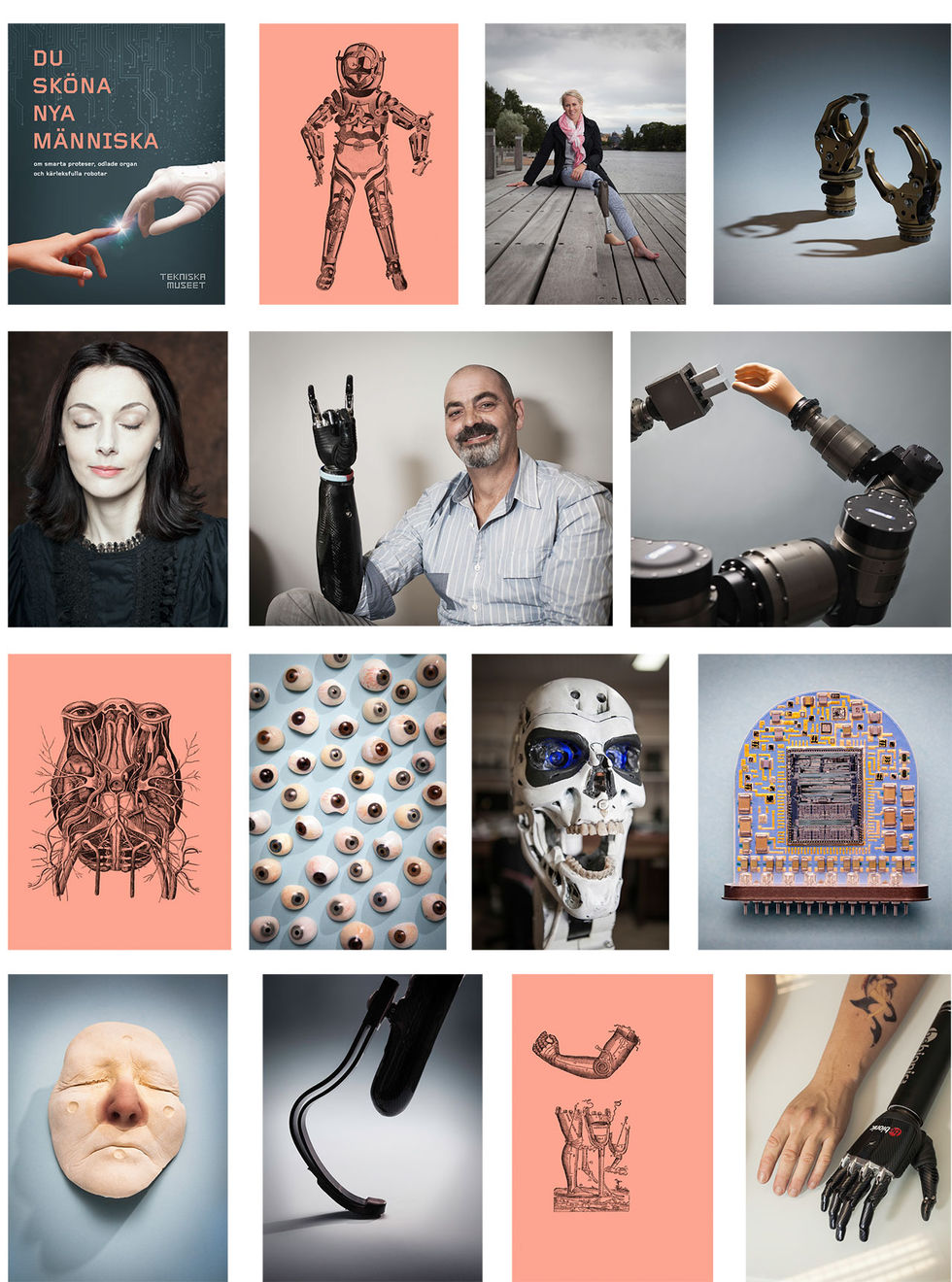Tekniska Museet har gett ut boken "Du sköna nya människa" med undertiteln "om smarta proteser, odlade organ och kärleksfulla robotar" där man undersöker var en människas kropp börjar och var den slutar.Man går in på områden som innefattar datalogi, nanoteknik, artificiell intelligens och intelligenta proteser som på ett eller annat sätt kan hjälpa människor som förlorat kroppsdelar eller har andra nedsatta kroppsfunktioner av något slag.Du sköna nya människa är skriven av Lotten Wiklund, Magdalena Tafvelin Heldner, Roger Qvarsell samt Sofia Seifarth och bildsatt av bland andra Milis Smith. Ni hittar några av fotografierna och illustrationerna från boken nedan. Boken kostar runt 200 kronor och går att köpa i Tekniska Museets butik i Stockholm samt i bokhandeln i så väl fysiska butiker som på nätet.