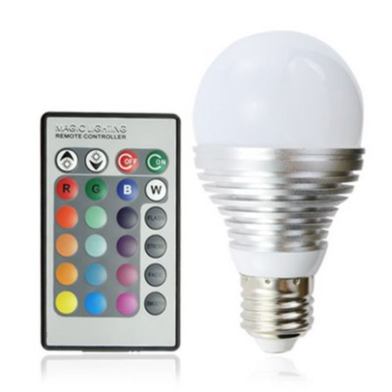 Med denna LED-lampa kan du själv bestämma vilken färg det ska vara i rummet. Du kan välja mellan 16 olika färger med hjälp av fjärrkontrollen. Det går även att dimma med fjärrkontrollen samt stänga av lampan. En sådan här lampa kostar 17.91 euro.