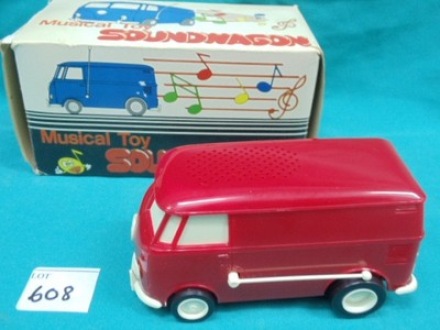 Soundwagon är en liten häftig VW-buss som drivs av ett 9-volts-batteri och som du placerar på din 33-varvare där den börjar köra runt på skivan och musiken kommer ur bilens inbyggda högtalare. Du startar den lilla bussen genom att fälla upp antennen och stänger av den på samma sätt. Soundwagon dök upp redan på 70-talet (se bilden ovan) och tillverkades då av japanska Tamco och är lika cool idag som då. Stokyo, som tillverkar den numera, visade upp sig och bussen lite kort på CES nyligen och nu går den att köpa på amazon.com för $90. Soundwagon går också att hitta i Stokyos egen store men är nog knepigare då den är på japanska.Soundwagon såldes för några år sedan under namnet "Vinyl Killer" och det var ett passande namn då man förstår att en väl avvägd tonarm och pickup är vänligare än en buss mot skivan men Stokyo har förbättrat några av bussens delar så förhoppningsvis skall den plåga vinylen mindre nu.