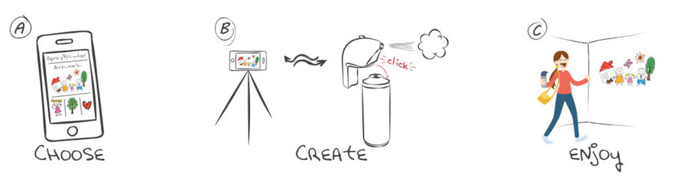 SprayPrinter är ett munstycke till en vanlig sprayburk som gör om denna till en slags matrisskrivare med vilken man kan måla porträtt av sina egna fotografier på väggen.Förutom själva punktskrivaren i munstycket så finns det även plats för användarens mobil där motivet som ska målas väljs ut och mobilens kamera håller samtidigt koll på var sprayburken befinner sig på väggen så att resultatet blir tillfredsställande. Det finns tyvärr ingen video tillgänglig som faktiskt visar hur exakt SprayPrinter är men blir resultatet som på bilden ovan så ser det ju lovande ut.SprayPrinter finns än så länge inte till försäljning utan siktar på att ta in finansiering via crowdfundingsajten IndieGoGo inom kort skriver man på sin hemsida.