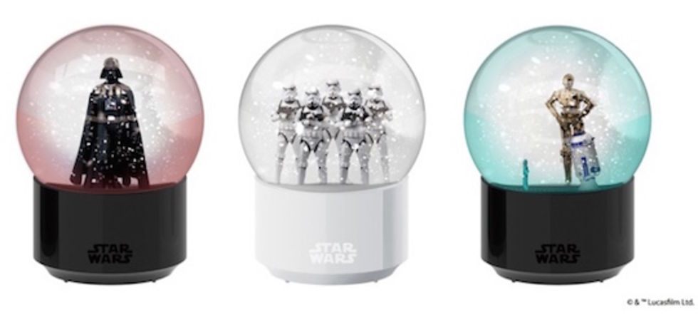 Gillar du både Star Wars och snöglober så finns nu tre stycken olika varianter av dessa att införskaffa från Japan Trend Shop.Förutom att snöa så har globerna inbyggda bluetooth-högtalare vilka man kan koppla sin telefon till om man även vill spela upp musik och gör man det så ska globerna snöa i takt till musiken som spelas.Globerna går att få med Darth Vader, Stormtroopers eller de båda robotarna R2-D2 och C-3PO. De kostar motsvarande nästan 1.900 kronor styck.