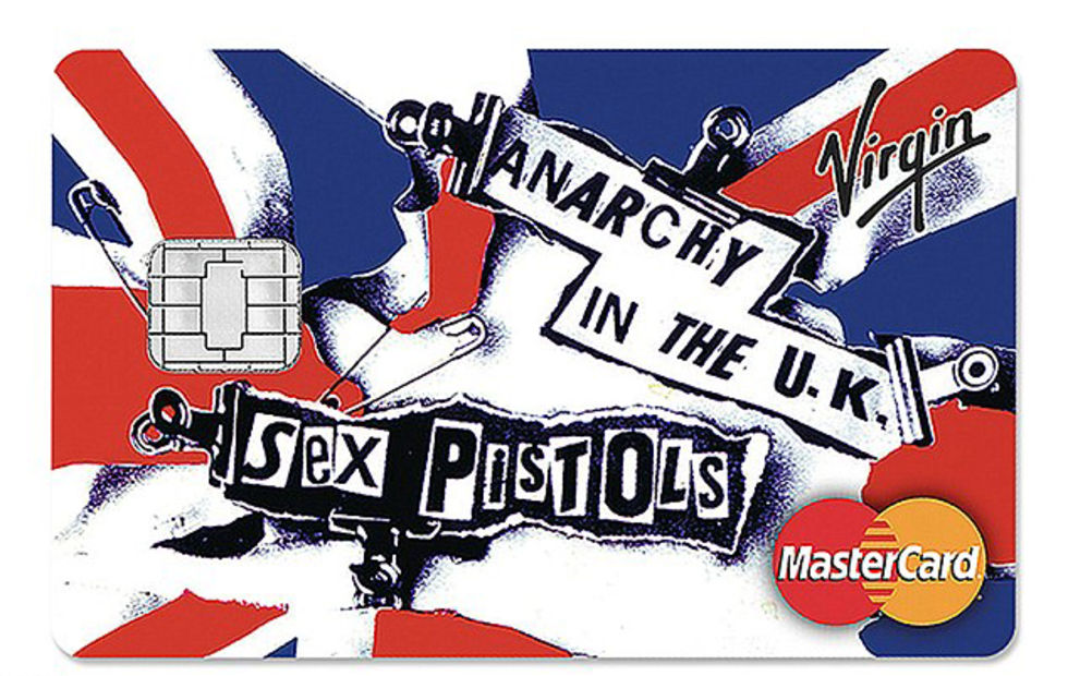 Richard Bransons banktjänst Virgin Money bevisar nu en gång för alla att punken faktiskt är död då det legendariska punkbandet Sex Pistols har låtit Virgin Money pryda sin bankkort med motiv från deras platta "Never Mind the Bollocks" samt singeln "Anarchy in the UK".Jayne-Anne Gadhia, chef på Virgin Money, kommenterar utseendet på tjänstens nya bankkort: "I’ve thought hard about whether this is the right thing to do. We don’t want anarchy in banking but we do want change. And we want to get rid of the boll*cks in banking and to be simple, open and transparent and fair. The established ways of doing things have often proved disastrous. The lack of competition has cost customers dear. And a dearth of innovation means big banks have much to do to catch up with the needs and requirements of today." Det är okänt vad Sex Pistols får betalt för att upplåta sina albumomslag till bankkortsmotiv och bandets frontman John Lydon (aka Johnny Rotten) har inte gått att nå för en kommentar.