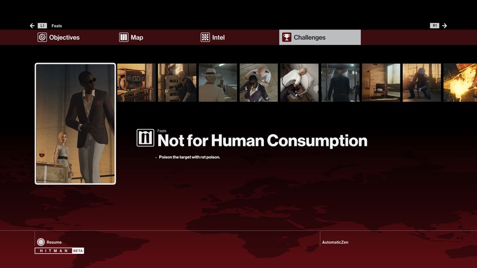 Det första uppdraget ägde rum på en båt som var full med människor och den strategi jag valde krävde att jag bytte om flera gånger för att först komma ombord och sedan komma nära mitt offer. Det är lätt att lokalisera själva måltavlan och utmaningen ligger därmed i att komma på rätt strategi för att ta ut offret utan att vakterna ger sig på dig och ofta krävs det flera steg för att komma dit. Just det här pusslandet känns riktigt underhållande och det är här Hitman visar sin sanna styrka. För även om det går att skjuta sig fram till måltavlan är det inte alls lika tillfredsställande och det är uppenbart att IO Interactive vill att vi ska smyga oss på våra offer. Håller man sig bara borta från människorna som markerats med vita prickar över huvudet vet man att läget är relativt lugnt. I det andra uppdraget hade jag exempelvis först en klar strategi framför mig men när jag skulle genomföra den kändes vakterna i närheten alldeles för alerta vilket innebar att jag backade och bytte till en strategi som kändes säkrare. Den initiala känslan är också att spelet känns väldigt levande. Båten var exempelvis full av festande människor medan soldater och anställda gick sina ganska förutbestämda rundor för att se till att läget var lugnt. Det är också meningen att spelaren ska använda sig av folksamlingar för att snappa upp information som kan vara nyttig att känna till och som kan ge ledtrådar angående olika möjliga strategier. Spelet är också försett med olika utmaningar för de olika uppdragen som kan fungera som inspiration gällande tillvägagångssätt. En av utmaningarna under det andra uppdraget var exempelvis Silent Assassin som innebar att du skulle döda din måltavla, endast döda just markerade måltavlor, gömma alla kroppar och inte bli upptäckt. En annan utmaning innebar att du ska göra samma sak men utan att använda förklädnad vilket definitivt krånglar till det. Utmaningarna kan dock innebära spoilers för den som vill hitta sin egen strategi, så där rekommenderar jag att spela uppdraget en gång först och sen kolla på utmaningarna för att eventuellt spela om uppdraget utifrån en annan strategi. Just möjligheten att ta sig an uppdragen på flera olika sätt gör att det episodindelade upplägget av spelet inte känns helt dumt. I väntan på nästa del i spelet kommer säkerligen många att återvända till redan genomspelade uppdrag för att försöka hitta alla udda sätt att ta sig an måltavlorna. Över lag fungerade genomspelningen av betan bra för min del och jag tycker att grafiken känns helt okej. Dock hade jag en del problem med att betan kraschade ett par gånger när jag skulle ladda en sparfil. Dessutom ramlade undertexterna bort titt som tätt vilket kändes frustrerande. Andra betatestare har också rapporterat problem med låg framerate och screen tearing vilket är något jag verkligen hoppas att de lyckas ta itu med innan spelet släpps offentligt den 11 mars. På fredag drar dessutom PC-versionen av betan igång och då lär vi få veta ännu mer om spelets prestanda på olika plattformar. Det ska också bli intressant att se om uppdragen efter ett tag känns upprepande, trots de olika strategiska möjligheterna, eller om det faktiskt blir så varierat som jag hoppas. Två uppdrag är aningen för lite för att utvärdera det och vi ser fram emot att få testa mer.