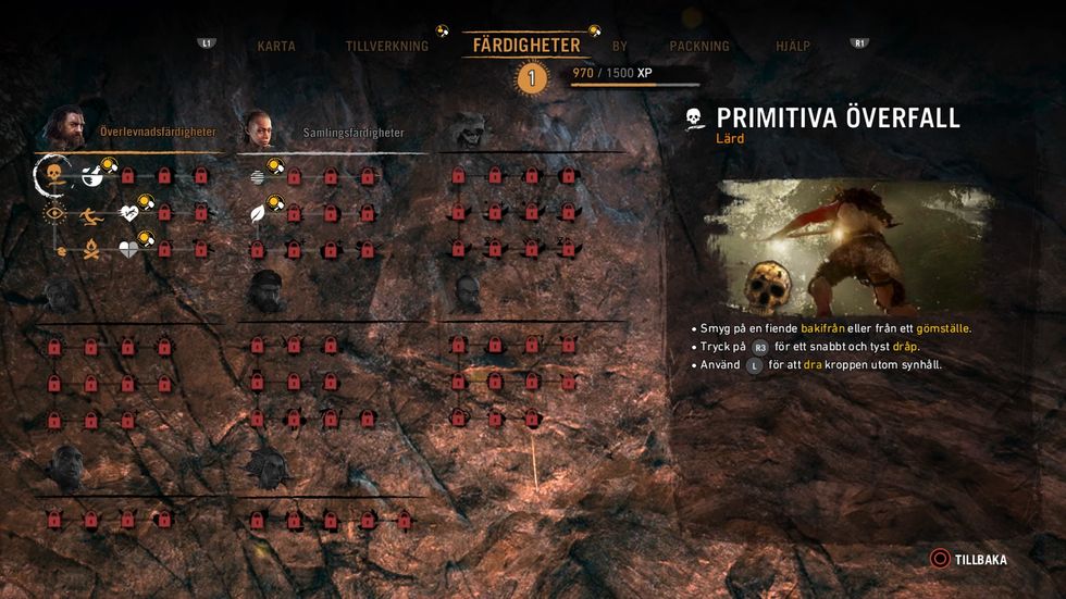 De som kört Far Cry-serien tidigare kommer att känna igen en hel del av spelets upplägg och interface och ändå känns allting väldigt annorlunda. För även om man redan tidigare kunnat använda vapen liksom pilbågar är det en stor skillnad att faktiskt ha tillgång till skjutvapen mot fiender jämfört med att få klara sig med en klubba eller ett spjut när en stor brunbjörn kommer rusande. Jag måste erkänna att jag direkt blev förälskad i atmosfären i Far Cry Primal och det känns som om jag klivit in i en animerad version av Grottbjörnens folk. Allt handlar om att upptäcka och om överlevnad och samlar du inte blad, grenar, sten eller annat material medan du är utanför grottan kommer du heller inte att kunna tillverka några vapen eller hela dig själv och då lär du absolut inte överleva. Precis som tidigare kan din huvudkaraktär, som den här gången heter Takkar, uppgradera sina förmågor under spelets gång och det gäller både vilka föremål som kan skapas och vilka färdigheter karaktären har. Det finns också både huvuduppdrag och sidouppdrag att ta sig an och med andra ord finns det en hel del att göra medan Takkar i sakta mak eller snabbt tempo utforskar sin omgivning. Rädda stammedlemmar som blivit tillfångatagna, ta över hyddor och grottor från andra stammar för att expandera din egen stam eller uppgradera byggnader för bättre förutsättningar i vildmarken. Du bestämmer i vilken ordning du vill ta dig an spelet. Ganska snabbt får Takkar, genom ett specifikt uppdrag, även förmågan att tämja djur som kan vara mycket behjälpliga i strider och det underlättar faktiskt en hel del. För när man står där med tre pilar och två spjut kan en flock vargar kännas övermäktig. Speciellt farligt är det att ge sig ut på natten då rovdjuren är som mest aktiva. Men det är också då det finns möjligheter att samla unika växter och material som kan behövas för att bli en bättre jägare. Grafiskt är spelet också extremt välgjort och omgivningarna är vackra, levande och fulla med djur och växter som väntar på att plockas eller jagas. Det känns också riktigt intensivt att ta sig runt i naturen eftersom det är väldigt mycket ljud överallt och här går det inte att slöspela med en musiklista i ena örat. För att undvika att bli påhoppad av ett stort rovdjur gäller det att hela tiden ha koll på omgivningen, både visuellt och genom att använda hörseln. Flera gånger avvek jag från min planerade rutt för att jag antingen ville undvika ett möte eller tvärt om ville ta mig an ett speciellt djur. Det jag gillar mest är ändå att det verkligen känns som om jag befinner mig på stenåldern. Allt ifrån det oförståeliga språket till de outforskade grottorna, djuren och neandertalarna som här och var urskillningslöst bankar ihjäl sina motståndare. Tillsammans med de primitiva vapnen skapar det en känsla av att jag verkligen är utlämnad till min egen kreativitet och styrka.Om spelet håller hela vägen till slutet eller om det efter ett tag kommer att kännas repetitivt kan jag än så länge inte uttala mig om. Men fram tills nu är jag fullständigt uppslukad av målet att överleva och hjälpa mina stammedlemmar och jag hoppas att den känslan håller i sig i många långa timmar till.