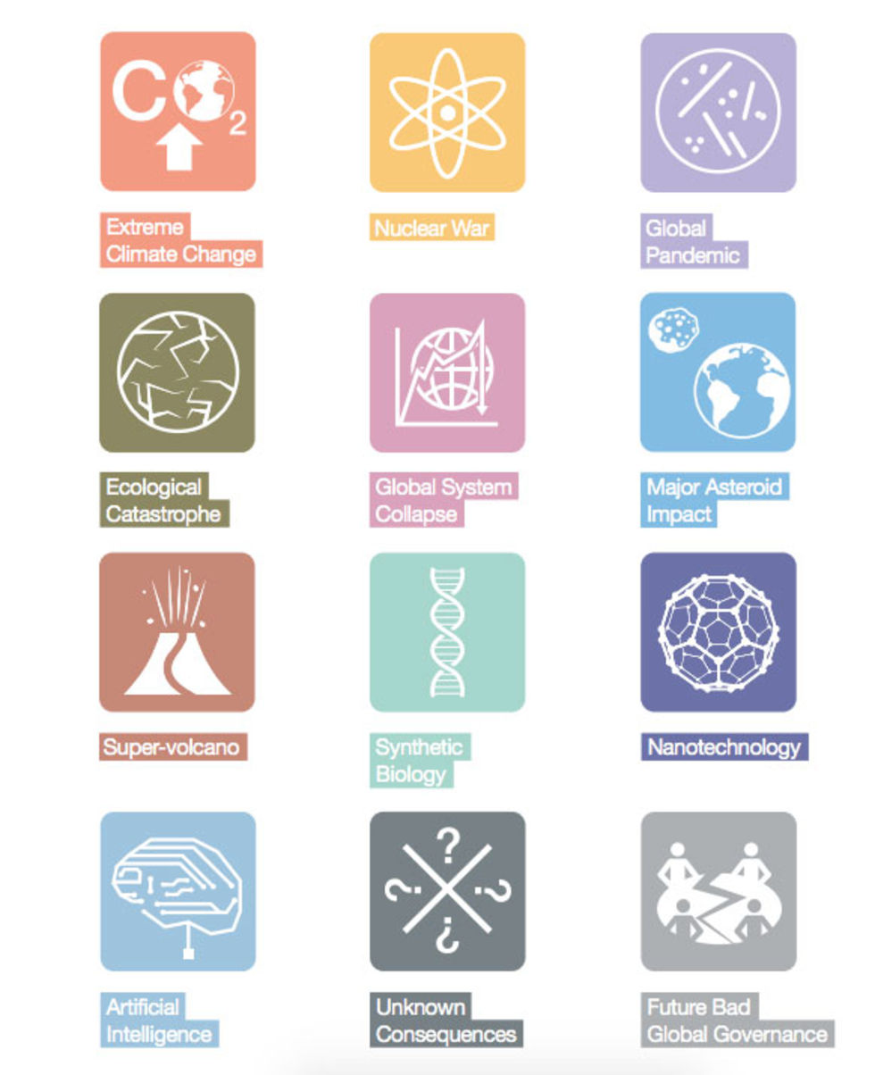 Forskare på Oxford University har listat vad de tror kan vara de tolv största orsakerna till människans undergång där kärnvapenkrig och klimatförändringar anses vara de två största anledningarna till varför det kan gå åt helvete för människan i framtiden.De tolv orsakerna som kan utrota mänskligheten i framtiden är: * Extrema klimatförändringar * Kärnvapenkrig * En global pandemi * Jorden träffas av en stor asteroid * Supervulkaner * Ekologiska katastrofer * Globalt systemfel * Syntetiskt framtagna virus * Nanoteknik * Artificiell intelligens * Globalt dålig ledning av världens nationer * Okända orsaker. Alltså hot som vi ännu inte känner till eller har lyckats identifiera.