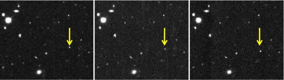 Astronomer har hittat en isig dvärgplanet som kretsar runt vår sol någonstans bakom den före detta planeten Pluto.För tillfället går planeten under namnet 2012 VP113 [wiki] och den befinner sig 1,2 miljarder mil från solen vilket är 80 gånger så långt bort som jorden befinner sig i relation till solen. Det tar 4000 jordår för 2012 VP113 att åka ett varv runt solen.2003 hittades även himlakroppen Sedna [wiki] i samma område vilket nu gör att forskarna tror att det kan finnas flera himlakroppar i området och dessa tillsammans med Sedna och 2012 VP113 skulle dessa kunna ge oss viktig information om hur vårt solsystem uppstod en gång i tiden.Här nedan kan ni kolla in en faktisk bild på VP113.