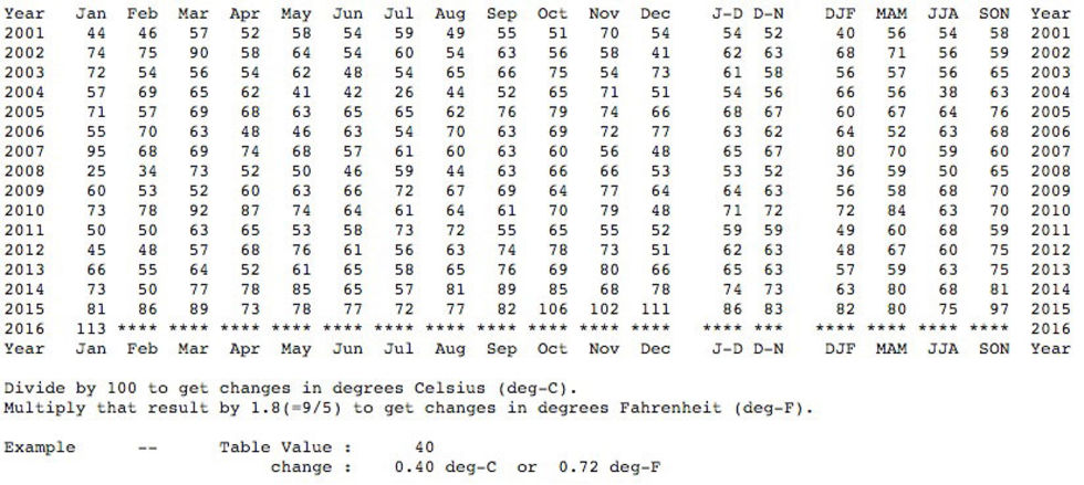 Att vår jord blir allt varmare håller i stort sett alla klimatforskare med om och när NASA släppte sin temeperaturstatistik för förra månaden visade sig att januari 2016 slog alla tidigare rekord. Då var det 1,3 grader varmare än genomsnittsjanuari 1951-1980, de åren man använder som riktmärke för tillfället. Det betyder även att januari 2016 var den största temperaturanomalin man uppmätt för någon månad någonsin sedan man började med sina mätningar 1880.Jämfört med januari 2015 var januari 2016 i genomsnitt 0,3 grader varmare. Det betyder att 2016 redan är på god väg att bli det varmaste året i modern tid efter att både 2014 och 2015 har innehaft den titeln. Som synes på kartan ovan så är Skandinavien ett av få ställen i världen där temperaturen höll sig inom eller nära genomsnittet för 1951 - 1980.Nedan hittar ni NASA temperaturstatistik för de senaste tio åren och skulle ni vilja kolla in NASA:s klimatdata från 1880 fram tills idag så hittas den här.