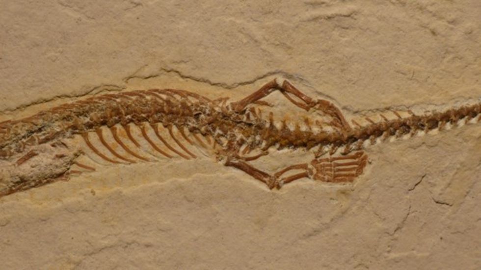 Forskare har hittat ett urgammalt ormfossil i Brasilien och där syns tydligt att den här typen av orm var försedd med både ben och fötter.Fossilet uppskattas vara runt hundra miljoner år gammalt och forskarna kunde enkelt identifiera fyra små ben med tillhörande fötter på ormen. Man tror dock inte att ormen tog sig fram gående utan snarare var benen till hjälp för att hålla fast byten samt sexpartners och eventuellt även för att gräva sig ner däggdjurs jordhålor men man är inte helt säker på något av detta.Brasilien tillhörde på den tiden när dessa ormar levde superkontinenten Gondwana [wiki] och man tror att ormar uppstod där först snarare än på den nordliga superkontintenten Laurasia [wiki].