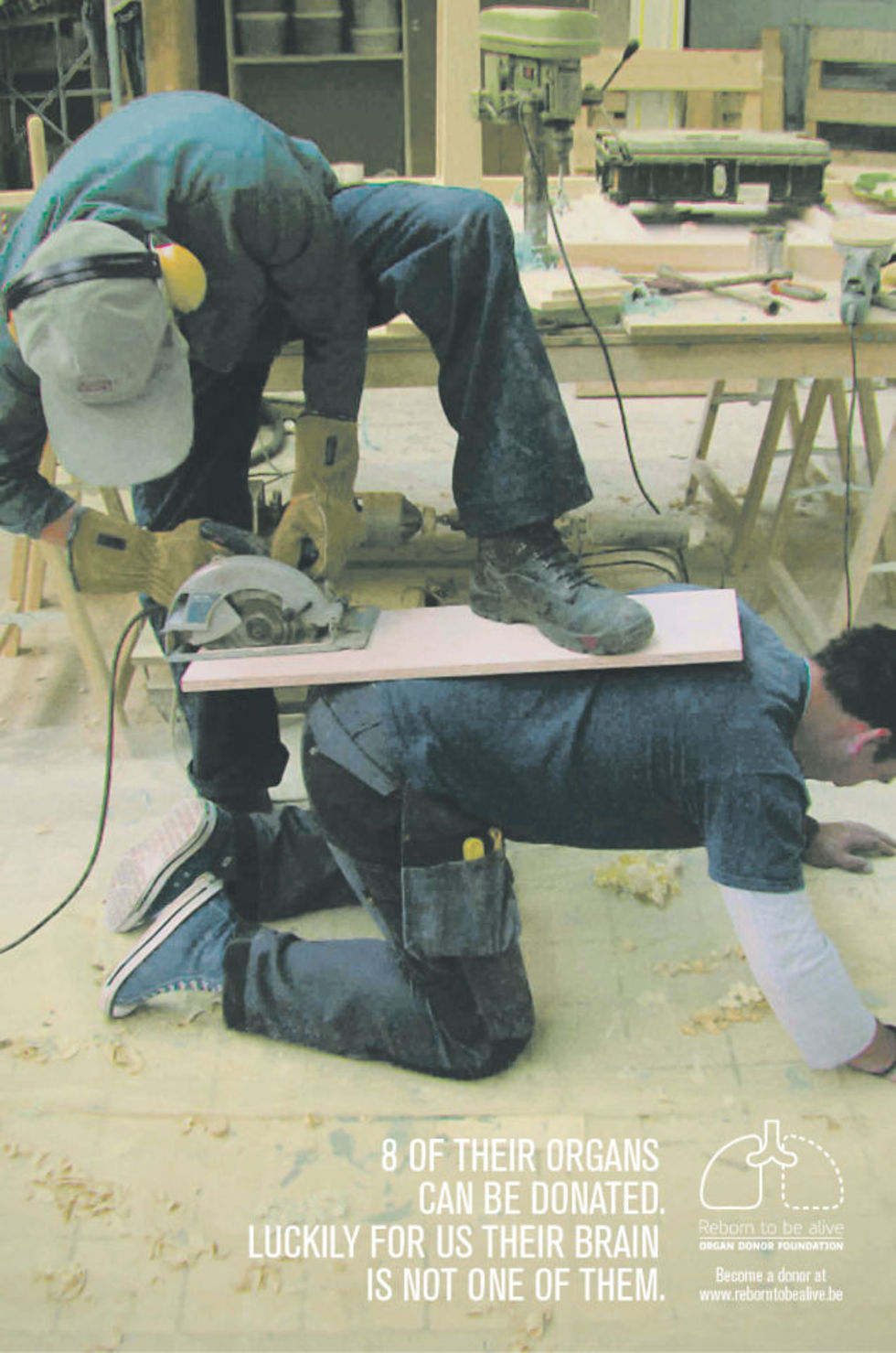 Här är en annons för en belgiskt organdonations-organisation där man leker lite med människans dumhet för att få fram sitt budskap. Och det funkar ganska så bra skulle jag vilja påstå.Ovan hittas kampanjfilmen och på bilderna under "Läs mer" några printversioner med samma budskap.