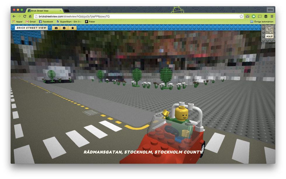 Gillar du LEGO och skulle vilja kolla in hur dina omgivningar skulle kunna se ut om de var byggda i LEGO så finns nu Brick Street View som är en Google Maps-mashup där man lagt ett LEGO-lager ovanpå Google Maps Streetview.Precis som på vanliga Streetview så letar man bara upp lämplig adress på kartan, placerar Pegman (I det här fallet Legowoman) där man vill kolla lite extra och därefter renderas en LEGO-miljö över den sökta platsen upp. Nedan kan ni bland annat se hur vår kontorsbyggnad ser ut på Brick Street View.Det är svenske Einar Öberg som ligger bakom Brick Street View och det var även han som gjorde Urban Jungle Street View som vi skrev lite om förra året. Den artikeln hittas inlänkad nedan.