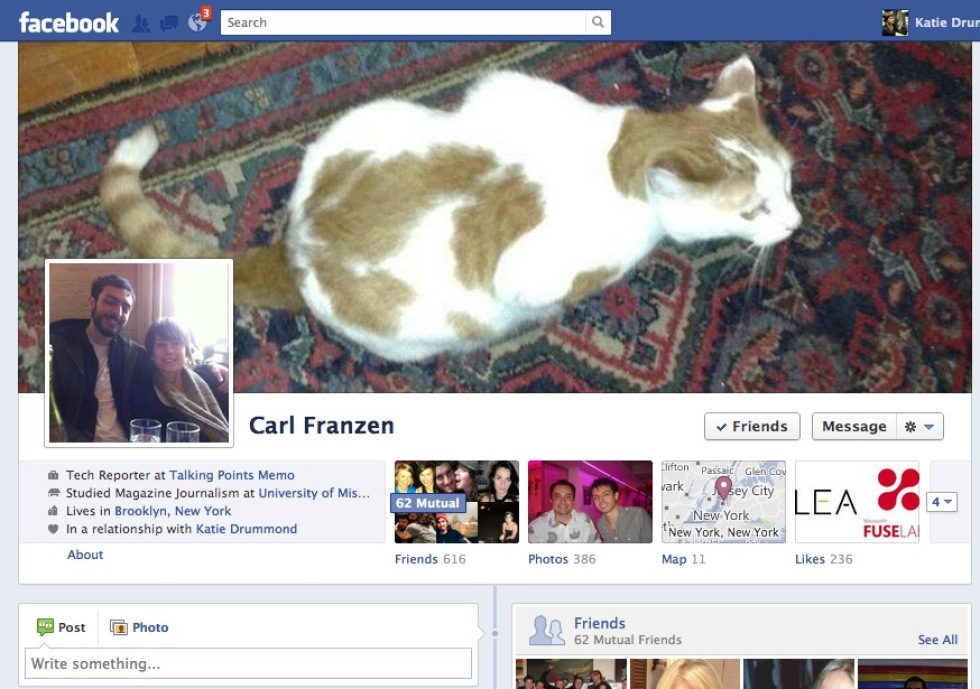 Facebook har börjat testa en ny design på sin så kallade Timeline-design, designen som implementerades på användares profilsidor för ett tag sedan och som de flesta användare nu gått över till även om en del inte verkar vara så intresserade av det.I den nya designen (se bild ovan) har man flyttat upp användarens namn, yrke, bostadsort och lite annat till själva omslagsbilden och frigjort plats under omslagbilden till en ny flik som man kallar för "summary" där användarens viktigaste Timeline-händelser samlas.Facebook har inte uppgett hur många användare som fått tillgång till den nya test-designen och inte heller om de här designförändringarna är något som faktiskt kommer att genomföras i framtiden. Här nedan är ett exempel på hur Timeline-sidan ser ut för tillfället.