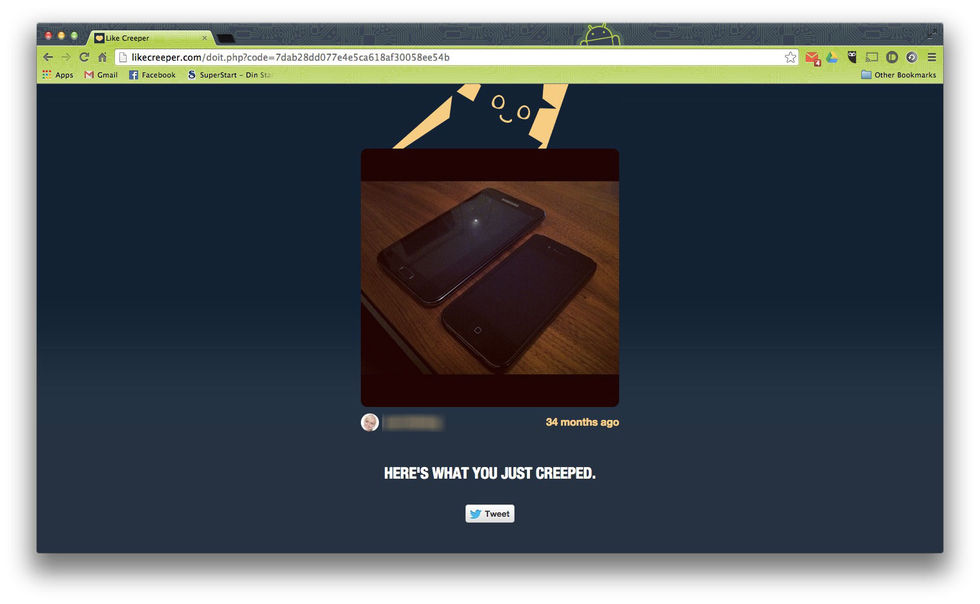 Like Creeper är en enkel webbtjänst med vilken man slumpmässigt kan gilla någons gamla Instagrambild.Efter man har anslutit sig till Like Creeper med sitt Instagramkonto går tjänsten igenom vilka du följer och deras bilder för att därefter automatiskt gilla en bild som är lite sådär tillräckligt gammal för att den som mottar lajken antagligen undrar vad man pysslar med.
