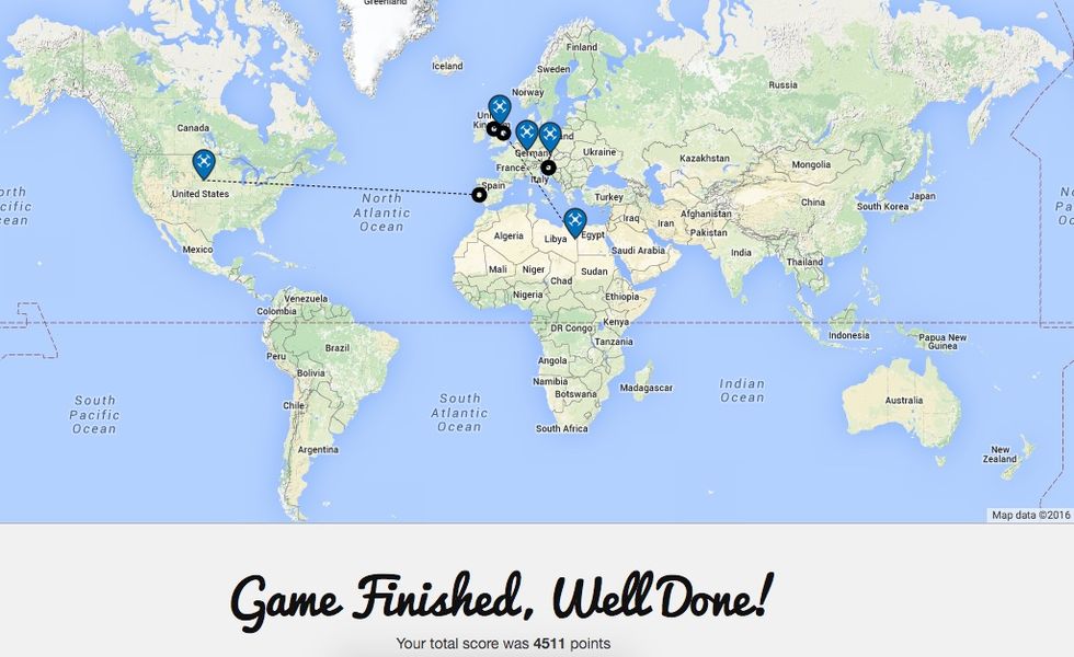 DroneGuesser är ett spel där man ska försöka lista ut var filmklippet man ser är filmat och sedan placera ut detta på en världskarta.Spelet är väl inte helt olikt spelet GeoGuessr som kom 2013 och skillnaden handlar väl mest om att i GeoGuessrs fall skulle man gissa platsen baserat på bilder från Google Street View medan man i DroneGuesser ska försöka bestämma platsen med hjälp av drönarfilmer från AirStoc. När man spelat klart en omgång med fem filmer så får man reda på var filmerna faktiskt är inspelade och detta visas tillsammans med ens egna gissningar (se bild nedan). Skulle man vilja så går det även att registrera ett konto på DroneGuesser och man får då möjlighet att ta plats på spelets topplista.