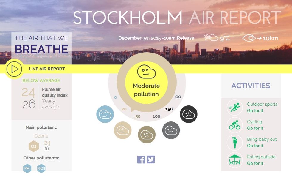 Under veckans klimatkonferens i Paris lanserade Plume Labs en webbtjänst där man på en karta snabbt kan få en överblick på luftkvaliteten i många av världens storstäder.Luftkvaliteten visas med hjälp av färger där mörkblått indikerar att luften är bra och sedan faller denna på en skala ner till svart där luften bedöms vara extremt förorenad, något som den bland annat är i den indiska staden Delhi som synes på skärmdumpen ovan.Det går även att klicka sig vidare på respektive stad för att få mer utförlig information om luften i den aktuella staden. Stockholm är den enda svenska staden som finns representerad än så länge.Luftkvalitetsrapporterna finns även tillgängliga som en app som kan laddas ner gratis till iOS från App Store här och till Android på Google Play här.