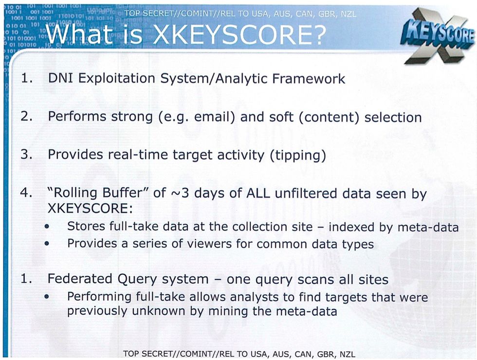 Brittiska The Guardian, som var de som först rapporterade om NSA:s övervakningsprogram PRISM, rapporterar nu om ett annat program som kallas för XKeyscore med vilket NSA har kunnat övervaka i stort sett "allting" som sker på Internet.Precis som var fallet med PRISM så kommer uppgifterna om XKeyscore från den före detta NSA-konsulten Edward Snowden som för tillfället befinner sig på landsflykt från USA för att ha lämnat ut dessa uppgifter. Det sägs att XKeyscore lagrar runt 41 miljarder poster data varje månad och tydligen ska datan man lagrar vara så omfattande att man inte har möjlighet att lagra den totala datan, det rör sig både om så kallad metadata (uppgifter om tid, vem som mottagit osv) och vanlig data (epost-meddelande, facebook-inlägg och liknande), i några dagar.Det ska även finnas möjligheter att använda XKeyscore om man vill övervaka vad någon gör i realtid på internet.NSA har kommenterat The Guardians uppgifter med följande uttalande: "XKeyscore is used as a part of NSA’s lawful foreign signals intelligence collection system. Additionally, access to XKeyscore is limited to only those personnel who require access for their assigned tasks."