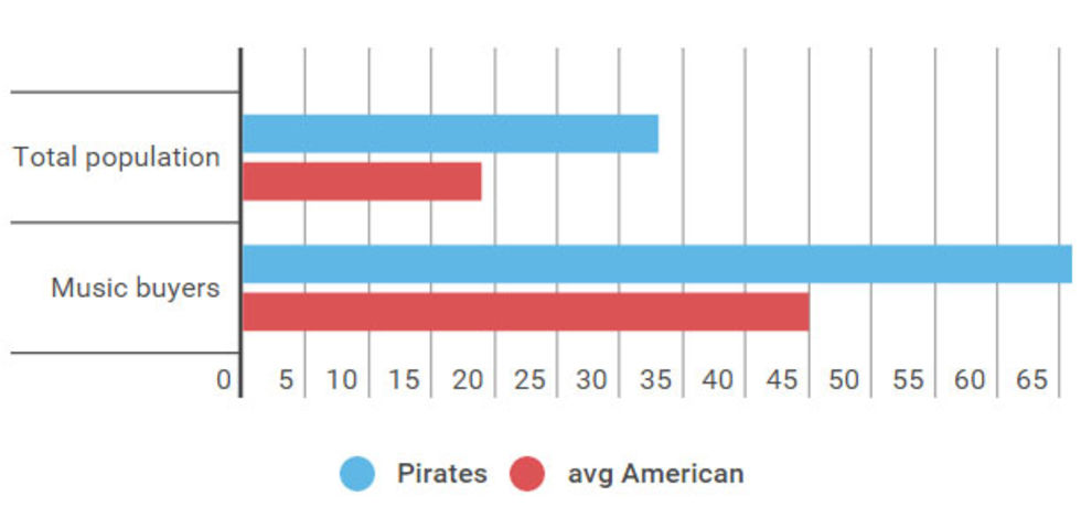 Det har länge sagts att de som olovligen ladda ner musik från nätet även är de som spenderar mest pengar på att köpa musik lagligt och detta verkar än en gång bekräftas nu.Enligt en undersökning som MusicWatch, ett företag som analyserar nöjesindustrin, att genomsnittsamerikanen lägger 19 dollar om året på att köpa musik medan de som laddar ner musik olovligen spenderade 33 dollar om året på musik införskaffad på laglig väg.När det kommer till gruppen "musikköpare", det är oklart hur denna grupp definieras, lade genomsnittet 45 dollar om året på laglig musik medan de som även laddade ner musik olovligen lade 81 dollar om året på laglig musik.Vidare framkom det i undersökningen att 57 miljoner amerikaner mellan 13 och 50 år brukade ladda ner musik från källor som inte har rätt att dela den.