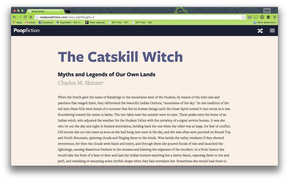 Saknar du något att läsa när du går på toaletten nu för tiden när de flesta inte har serietidningar liggande där längre så kanske det kan vara något som sajten "Poop Fiction" kan hjälpa dig med.Det handlar om en rätt enkel tjänst där man bara behöver välja ungefär hur länge man har tänkt sig att bli sittande på muggen och därefter slumpar Poop Fiction fram en kortare text/novell som kanske kan passa under din tid på hemlighuset. Tjänsten är responsiv och den funkar med andra ord lika bra på mobiler och tablets som på en vanlig dator.