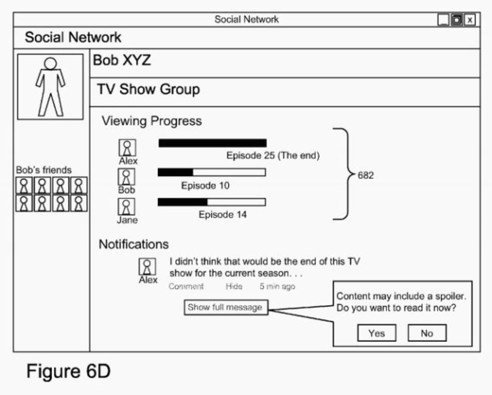Google har tagit patent på ett system som skulle kunna göra att man slipper se spoilers för tv-serier, filmer, böcker och annat i sociala medier.Systemet fungerar genom att en robot läser igenom inlägg från till exempel Google+ och hittar den något som kan tänkas vara en spoiler så blurras detta ut och användaren får via ett popufönster en varning som säger att inlägget kan innehålla spoilers. Som synes i patentansökan nedan så skriver "Alex", som har sett hela säsongen av en tv-serie, ett inlägg till "Bob", som bara sett tio episoder av tv-programmet, som spoilersystemet uppfattar kan vara en spoiler och varnar då "Bob".Det verkar som ett rätt smart system men det skulle antagligen kräva en del för Google för att få Facebook, Twitter och andra sociala medie-tjänster att implementera detta.