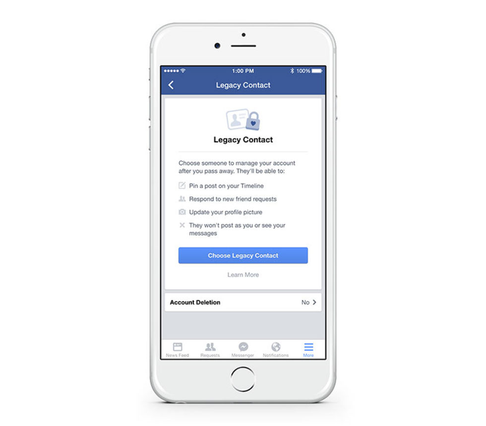 Facebook har infört en ny funktion som man kallar för "legacy" (arv) med vilken en facebookanvändare kan utse någon av sina facebookvänner till administratör av den egna sidan i den händelse av att man skulle råka gå och dö, något som med stor sannolikhet kommer att drabba oss alla någon gång.Personen man utser till Facebookadministratör måste godkänna detta och kan sedan skriva inlägg i användarens flöde, godkänna eventuella vänskapsförfrågningar samt uppdatera profil och omslagsbild. Administratören ska även kunna radera hela den avlidnes facebookprofil vilket kanske kan vara ett önskemål från en del som kanske inte vill fortsätta som spöken på Facebook efter sin död.Facebook har sedan tidigare en funktion som gör om en avlidens person på Facebook till en slags minnessida men den har inte gått att redigera om inte någon hade tillgång till den avlidnes inloggningsuppgifter.